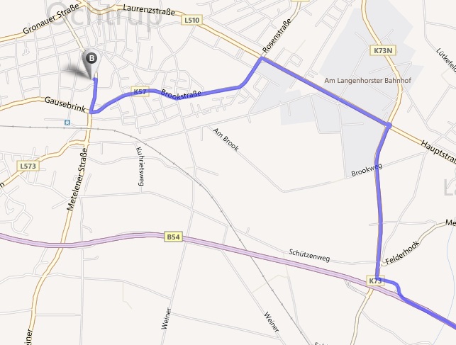 » Auf der B54 fahrend die erste Abfahrt (Ochtrup/Langenhorst/EOC) abfahren,